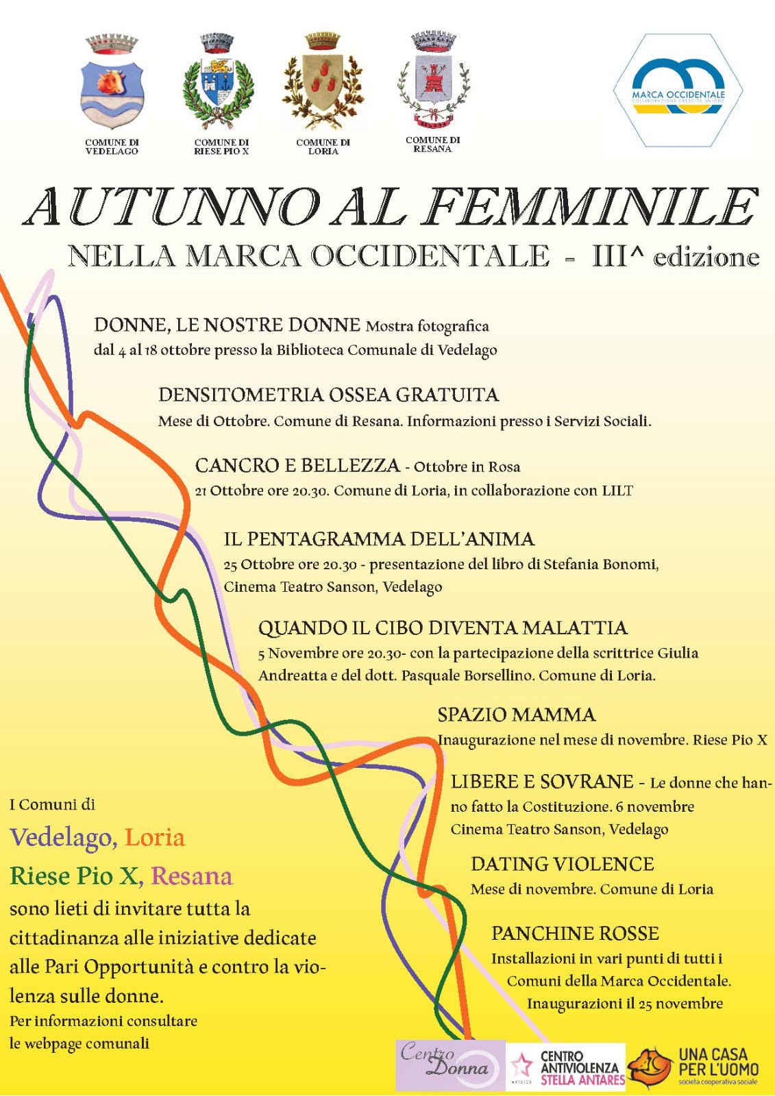 Sarà davvero un autunno dedicato all’universo femminile quello della Marca Occidentale (Resana, Vedelago , Loria e Riese Pio X ) al quale parteciperemo anche noi come LILT (Lega Italiana Lotta ai Tumori).