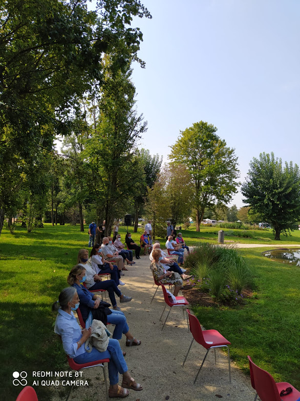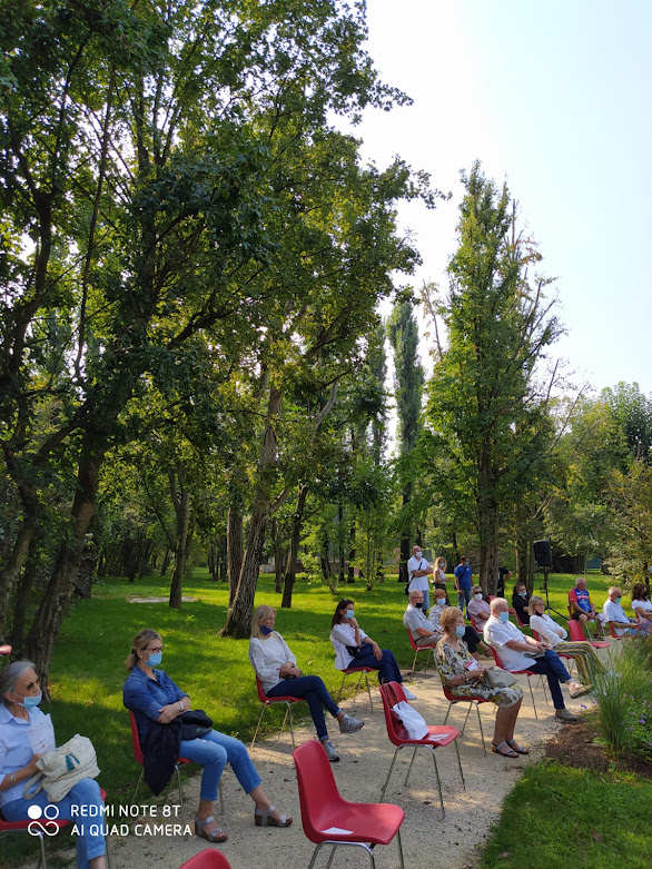 Nella zona adiacente al laghetto stazionavano alcune sedie per il pubblico, un leggio e un microfono, per dare la possibilità ai rappresentanti delle varie associazioni, di parlare della propria realtà, delle iniziative, dei progetti, dando informazioni e riferimenti.